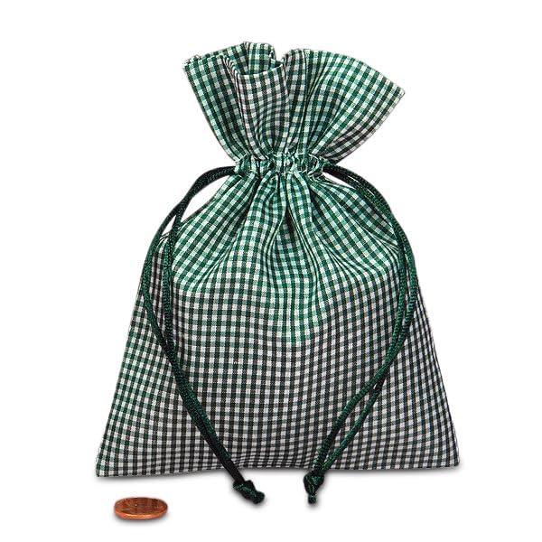 Green Gingham Bags | Quantity: 12 | Width: 4" - Green Gingham Bags are made with a gingham pattern fabric. Gingham bags are the perfect accessory to your "Country" themed events. Great for packaging small gifts, baked goods, or etc. Bags pull close with drawstrings.