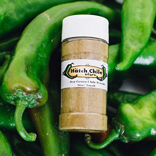 Add a flavorful spicy kick to any dish with our green chile powder. We use sun-dried chile to make the green chile powder and the flavor is awesome! If you are an ex-New Mexican or someone who just loves spicy food, our green chile powder is right for you. We add it to tons of dishes including Fettuccine Alfredo, potato salad, and of course green enchiladas! Sometimes, we even add it to potato chips for a decadent spicy treat! Green Chile Powder is available in Hot or Mild only, and is packaged in small, medium, and large spice jars. Chile Powder must be cooked before