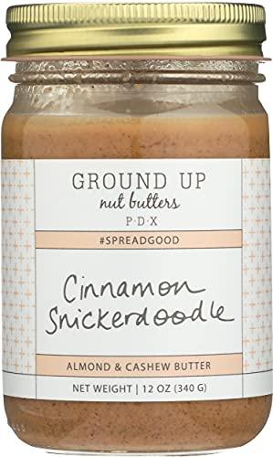 GROUND UP PDX cinnamon snickerdoodle almond & cashew butter nails the delicious flavor of your favorite cookies made into a healthy nut butter. Honey sweetens this nut butter in a healthy way, and the rest of the ingredients list is just as simple with almonds, cashews, coconut, cinnamon, vanilla and sea salt rounding out the recipe. Scoop out a serving from this 12 ounce jar to enjoy on a sandwich or in recipes such as smoothies and oatmeal.