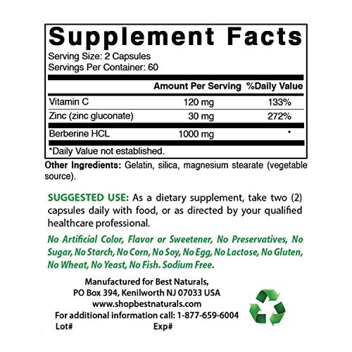 - 500 mg of Gymnema Extract per Capsule - 120 Capsules per Bottle, 1000 mg of Berberine HCL per Serving - 120 Capsules per Bottle.