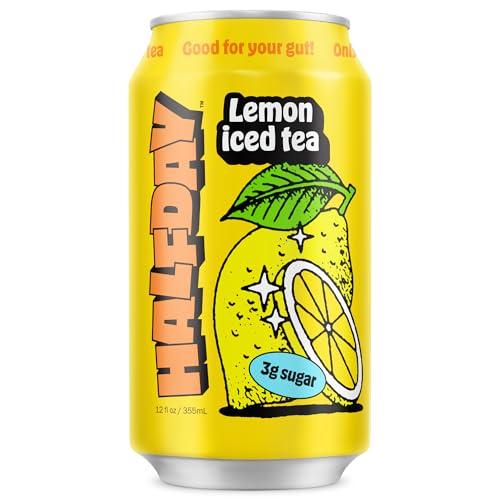 - GUT-HEALTHY & LOW CALORIE REFRESHMENT: Relish our nostalgic yet innovative prebiotic iced teas, each with just 3g of sugar per can. Packed with 8g of prebiotic fiber, they support gut health while evoking cherished memories. Free from artificial sweeteners, colors, flavors, or preservatives, Halfday iced tea is a wholesome choice.