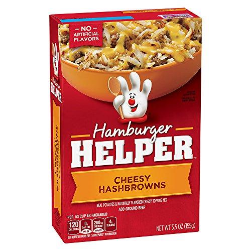 Hamburger Helper dinner mixes help bring busy families together for a hearty, wholesome meal. With Hamburger Helper, it's simple to create a home-cooked skillet meal--just add ground beef to the specially selected pasta, rice, potatoes, or stuffing and seasoned sauce mixes to create a wide variety of flavorful dinners. Bring a cheesy favorite to your table with the Idaho potatoes and cheddar cheese of Hamburger Helper Cheesy Hashbrowns. Each package makes five one-cup servings. Hamburger Helper can add a host of flavors to your mealtime solutions: other cheesy favorites include Cheddar Cheese Melt, Three Cheese, and Bacon Cheeseburger. After all, who couldn't use a little help in the kitchen?