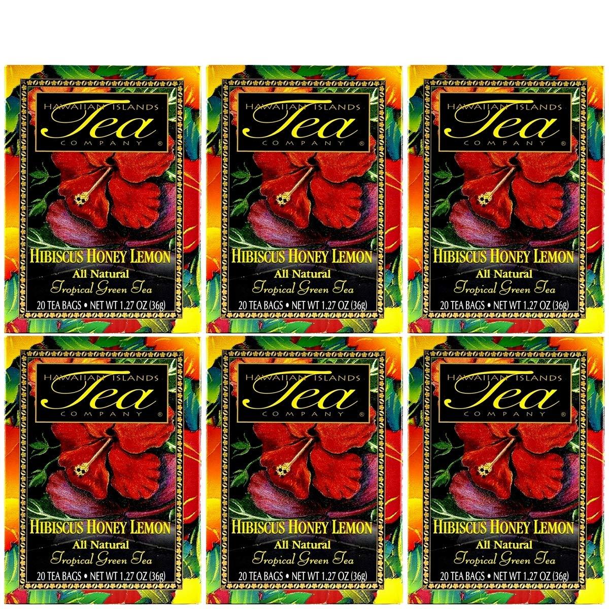 Hawaiian Islands Tea Company Hibiscus Honey Lemon Tropical Green Tea, All Natural - 120 Teabags (6 Boxes)