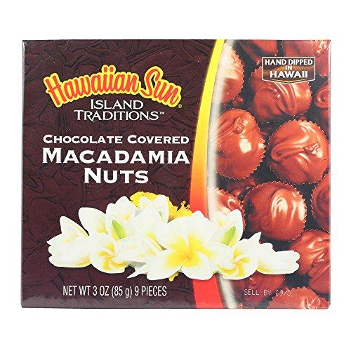 Hawaiian Sun Island Traditions Chocolate Covered Macadamia Nuts 3 Oz box includes nine individual pieces Hand dipped in Hawaii Milk Chocolate Shipped from Hawaii, USA
