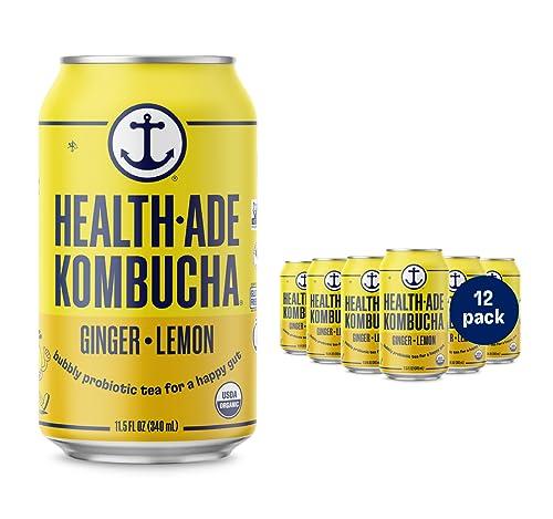 Health-Ade Health-Ade Canned Kombucha Tea Organic Drink, Fermented Tea with Living Probiotics, Detoxifying Acids, Supports Gut Health, Non-GMO, Vegan, Gluten Free, 12 Pack (11.5 Fl Oz Cans), Ginger-Lemon Kombucha in Cans