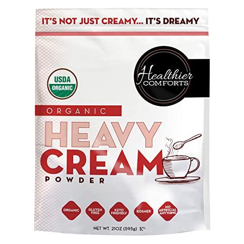 - 100% ORGANIC Made with USDA Certified Organic Heavy Cream powder sourced from US dairy farms. A powder cream with no hidden ingredients, no antibiotics or growth hormones. Perfect for organic coffee creamers, as our ingredients are Gluten Free, Kosher Certified, non-GMO and made with no fillers to ensure that our powdered heavy cream is both delicious and healthy.