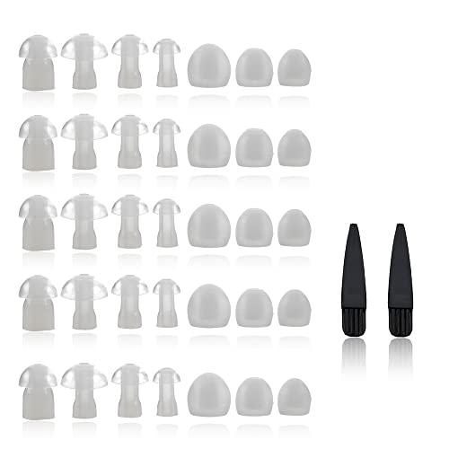 - INCLUDES: Two sets ear cleaning tools included (2 cleaning brushes, 2 sticks). For Optimal Results - select the silicone hearing aid dome size that best fits you. If the dome is too large, it may cause discomfort by exerting pressure on your ear canal. Conversely, if the dome is too small, it may lead to sound leakage and unpleasant squealing.