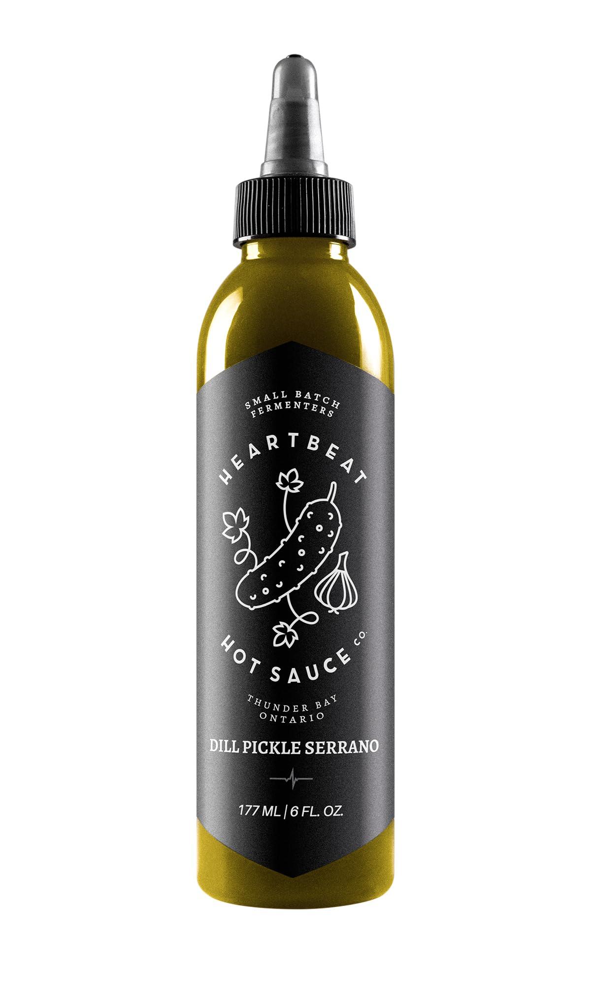 - Memory-Making Pairings: Dill Pickle Serrano hot sauce is a 2 out of 10 on the Heartbeat Heat Scale. This boldly tangy sauce can be enjoyed on eggs, bloody marys, hot dogs, hamburgers, potato salad and tuna salad sandwiches.