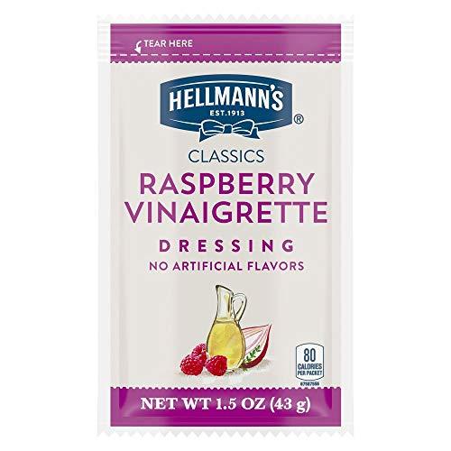 Allow your patrons to add juicy raspberry vinaigrette flavor to your menu items with Hellmann's Classics Raspberry Vinaigrette Salad Dressing Portion Control Sachets. Made with real, simple ingredients that your guests can trust, this gluten-free raspberry vinaigrette salad dressing contains no high fructose corn syrup, no artificial colors, and no artificial flavors. It clings exceptionally well to leafy greens, making it ideal for mixing with crispy fresh greens or grain bowls. Whether paired with a house salad or served as a condiment, this dressing is sure to leave your patrons with a positive impression. And since it comes packaged in convenient 1.5-ounce raspberry vinaigrette salad dressing packets, it makes it easy for patrons to serve just the right amount.