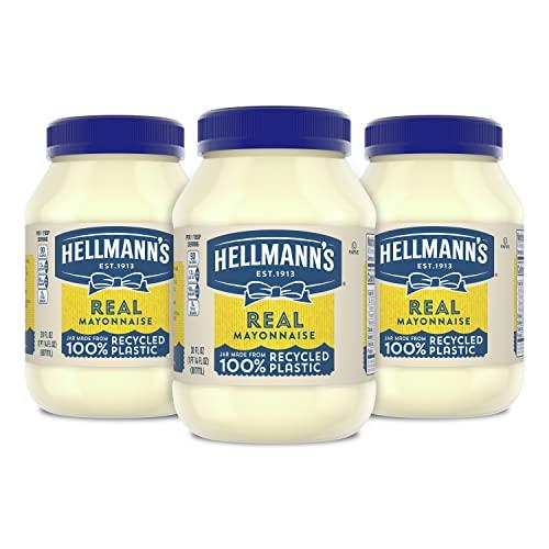 HELLMANN'S Hellmann\'s Real Mayonnaise, Gluten Free, Made with 100% Cage-Free Eggs, 30 Fl Oz, Pack of 3