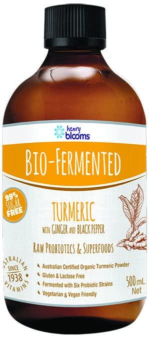 Henry Blooms Bio-Fermented Turmeric with Ginger and Black Pepper combines the superfood benefits of Turmeric in a raw probiotic concentrate to support friendly bacteria for a healthy, happy gut and is 99% sugar free, gluten free and vegan friendly. Our bio-fermented concentrate contains Australian Certified Organic Turmeric, well known for its anti-inflammatory and health enhancing properties, combined with Ginger and Black Pepper to enhance absorption. Our unique MultiplyPlus process involves five stages of bio-fermentation using multi-strain, gut-loving probiotics, resulting in a more bio-available (easily absorbed) and bio-active complex.