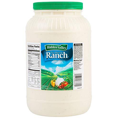 Hidden Valley Ranch The Hidden Valley The Original Ranch is a cream-based salad dressing made with buttermilk, garlic, onions, egg yolks, and various spices. Ready to eat, this ranch dressing can be used as a spread, dressing, or dip for a wide variety of menu items such as salads, French fries, chicken wings, pizzas, and more. This bulk case with 4 jars of Hidden Valley ranch will be an ideal buy for restaurants, cafes, diners, and hotels. Shelf life: 150 days Keep refrigerated for later use 1 gal. (3.78 l) each 4 jars per case 05620HV Dressing Ranch Original Jar 4/1 Gal Preparation instruction: Ready to use.