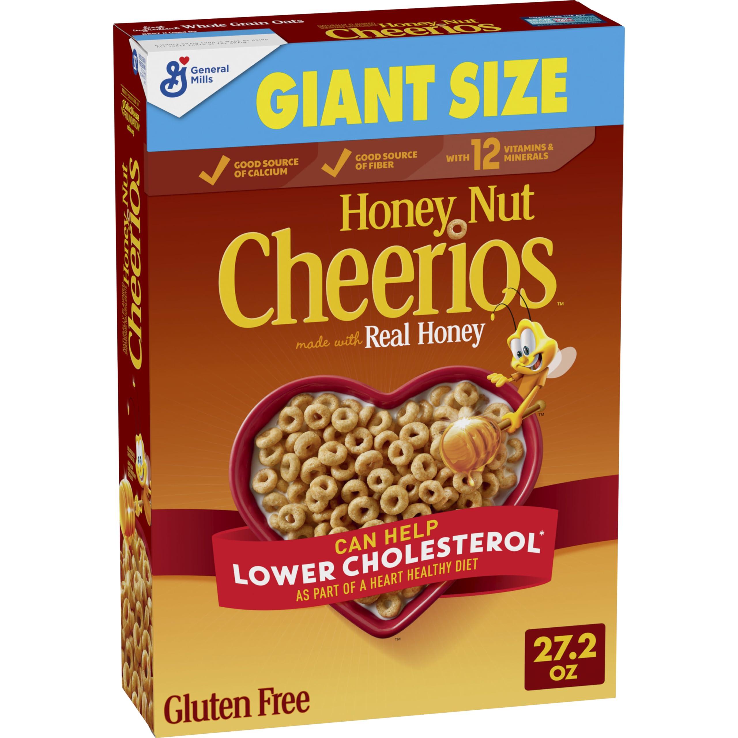 - CONTAINS: One 27.2 oz Giant Size cereal box of Honey Nut Cheerios Heart Healthy Gluten Free Breakfast Cereal
