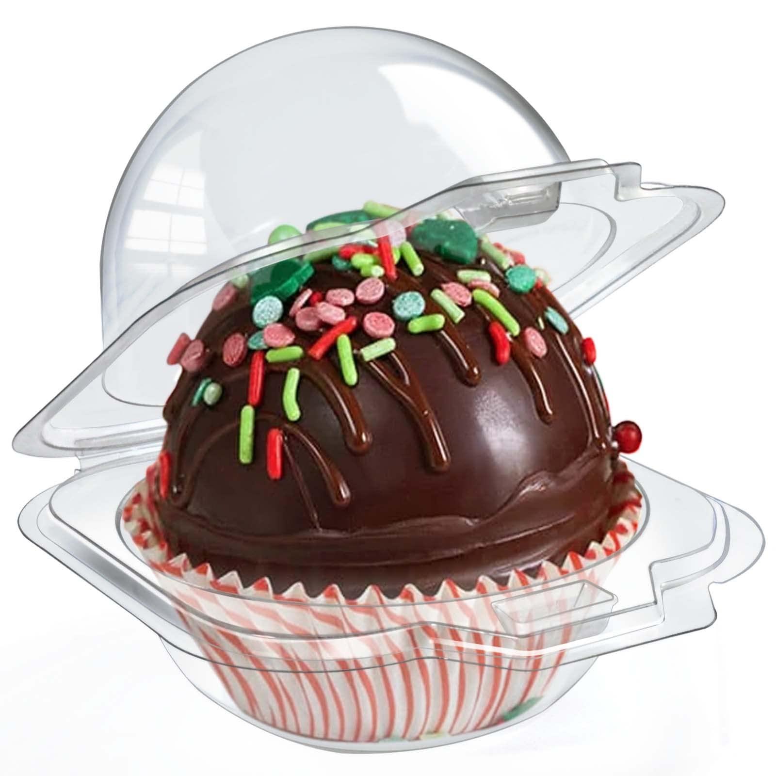 - WHAT YOU WILL GET 50 Pcs clear ball box. Size is 3" x 3.2". Flat bottom is 2". Suitable for One 2-3" cocoa bomb or one small cupcake. Cocoa bomb will be more cute within the ball shaped container.