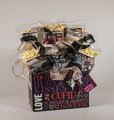 A great gift idea for a Romantic occasion! Contains1 large bag of Caramel Corn, 1 large bag of Cheddar Cheese Corn, 1 large bag of Theatre Corn, 2 bags of your choice: Parmesan Garlic, Ranch, Dill Pickle, Sour Cream & Chives, White Cheddar, Salt & Vinegar, and Hot & Spicy. Also contains heart themed candy. All Bouquets are trimmed with real 35mm movie film and ribbon. Comes with matching gift card, and you can add movie tickets for just $5 each.