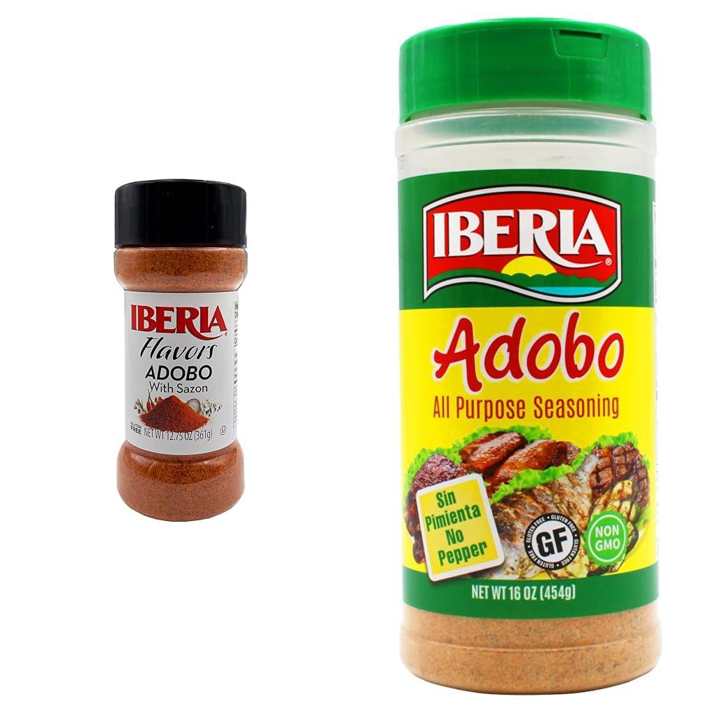 - Get ready for a flavor explosion with our Iberia Adobo with Sazon seasoning, packed with a delicious blend of herbs and spices that will make your taste buds dance with joy.