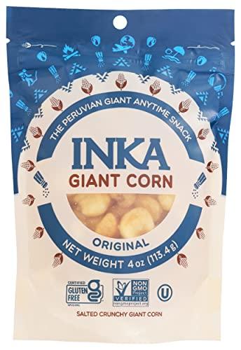 Inka Crops Original Roasted Giant Corn, 4 Ounce -- 6 per case. Deliciously roasted with only salt, comes the most delicious and crunchy treat this part of the globe has to offer. Did we mention its BIG?, I mean, the real Giant Corn of the Inkas. Ingredients: Corn, palm olefin and sea salt. Dairy free, Gluten Free, Vegan, Wheat Free, Yeast Free