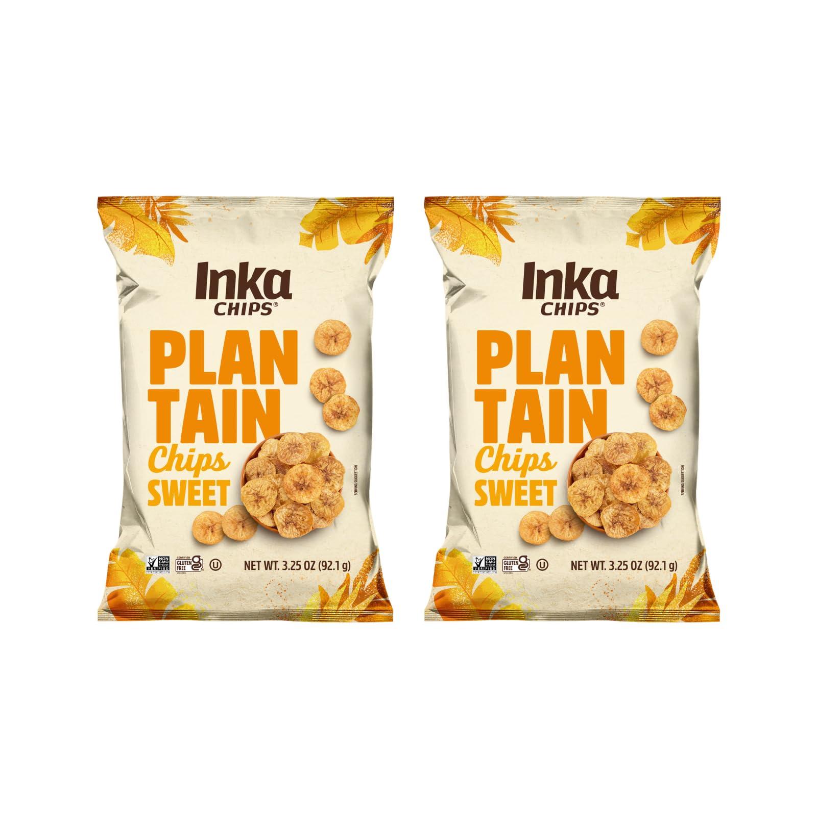 Inka Crops Sweet Plantain Chips, 3.25 Ounce -- 12 per case. Ripe plantains produce a naturally sweet chip that will indulge your senses to higher levels. Inka Chips: a unique vegetable chips selection for the zest conscious. Be part of our world... Reward yourself! Ingredients: Ripe and Sweet plantains and palm olein Shlef Life: 360 days Vegan, Gluten Free