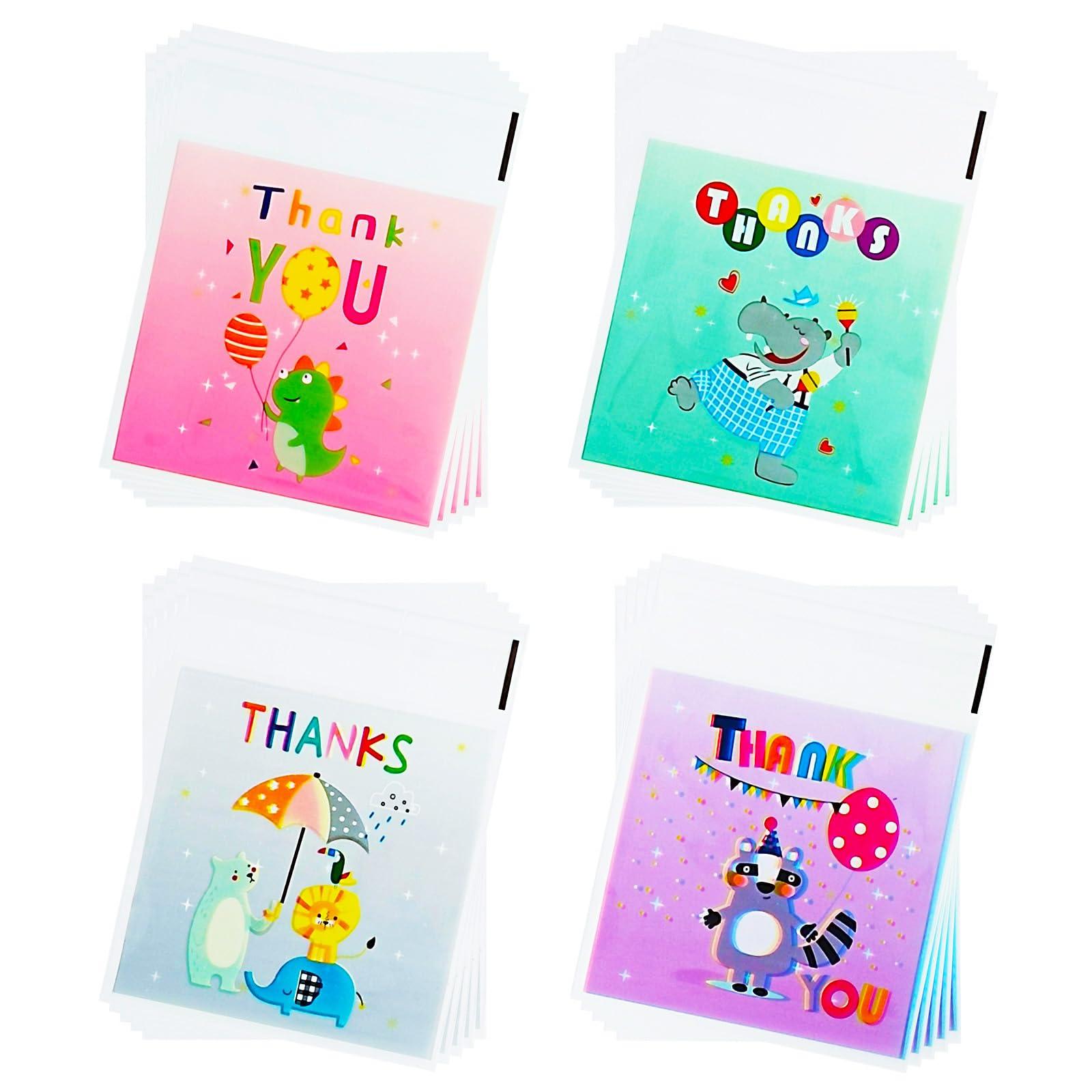 Jagrove 100 Pieces 4X4 Inch Cellophane Treat Bags with Animal Patterns Self-Adhesive Cello Bags for Candy Cookie Snack Bakery Gift Giving Wrapping