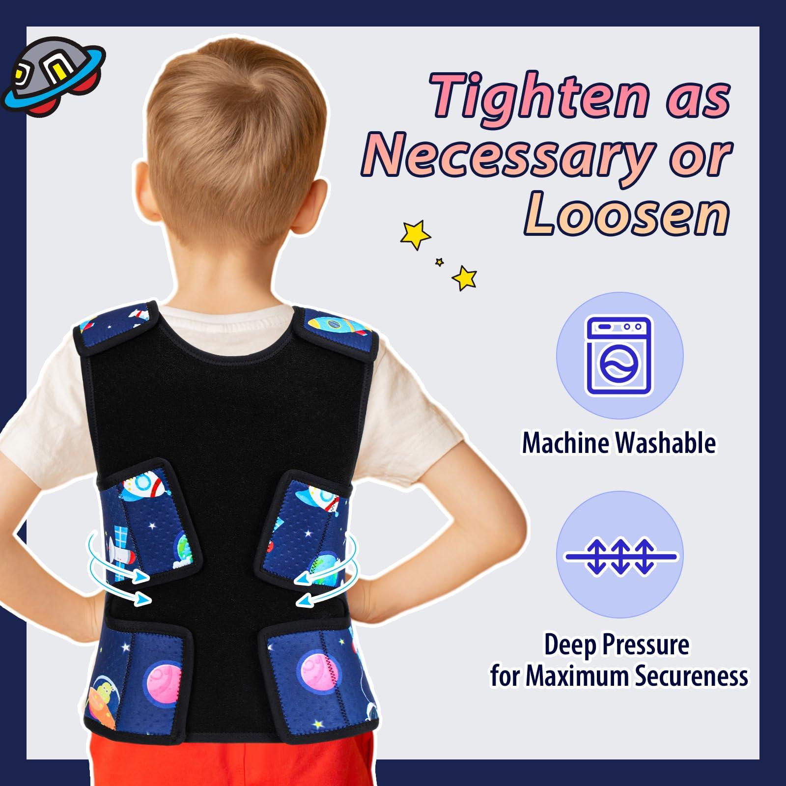 - Easy to Put on: the pressure vest for kids is easy to wear, which can be worn over or under your clothes, without restricting your activity; The vest can wrap tightly around the body and bring you a cozy wearing experience