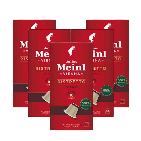 - Julius Meinl Ristretto Intenso Nespresso Biodegradable Capsules: Top premium South and Central American and East African Arabicas with a hint of the best Asian Robustas are harmonized in this short, impressive piece of poetry.