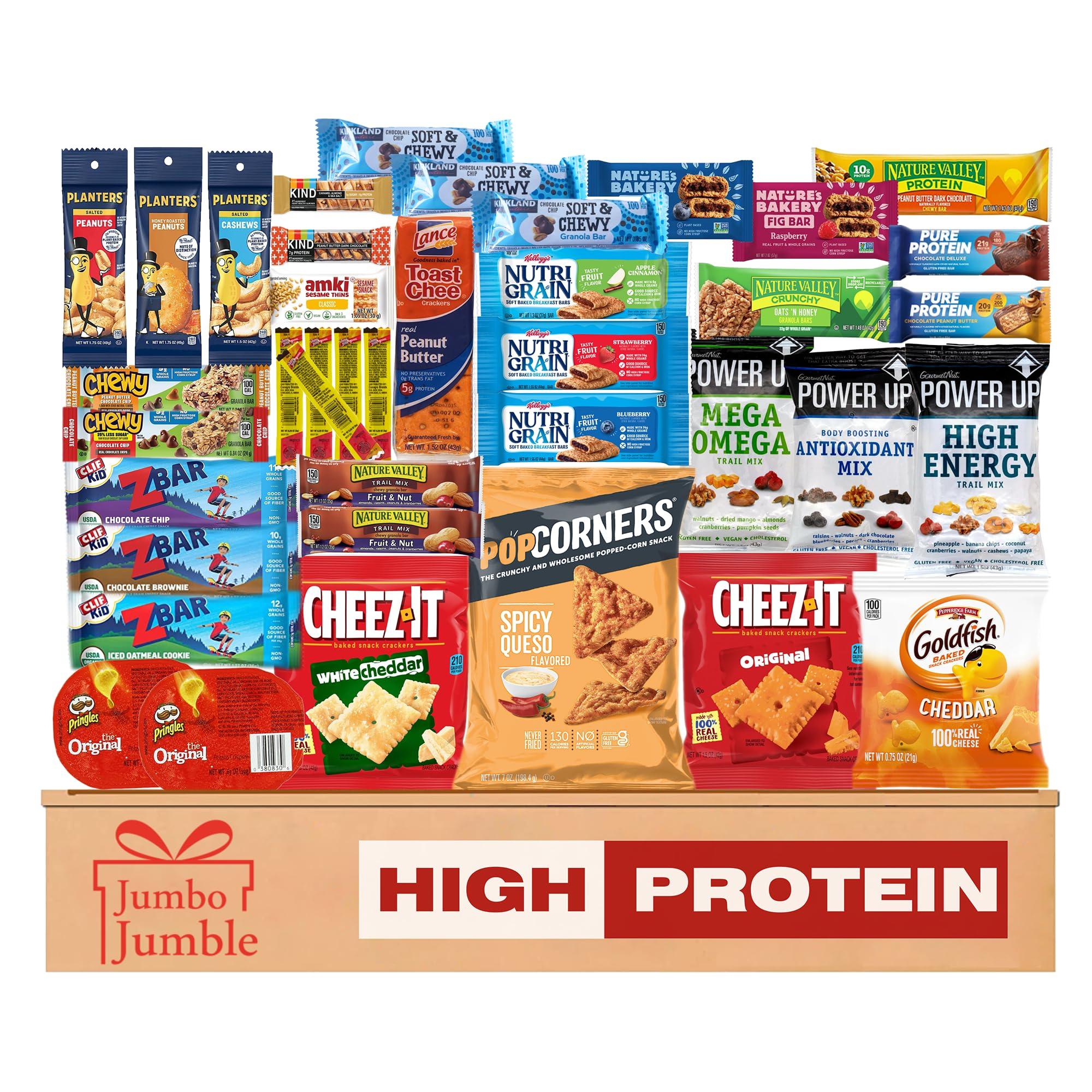 - Quality: Proudly crafted by Jumbo Jumble, the Protein bars and snack variety care package assures delectable, nutritious choices. The selection balances fresh and delicious treats for a satisfying snack time without guilt. We have organized and packed every single care package snack box with our hands to take the unboxing experience to the next level.