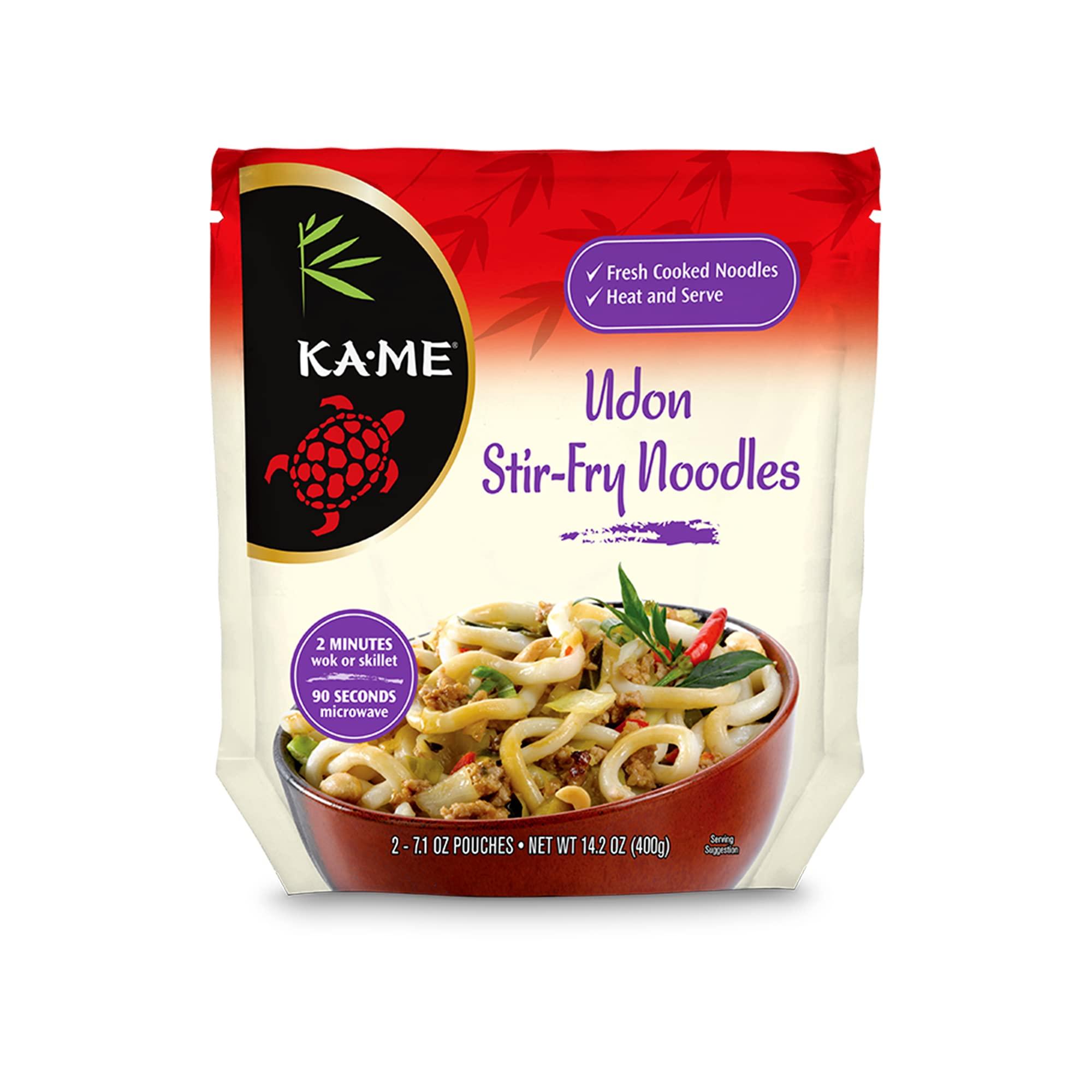 - AUTHENTIC JAPANESE NOODLES - Udon Noodles are thick, white Japanese noodles that can be eaten cold or hot and made with the finest quality ingredients. KA-MEs Udon Stir Fry Noodles are perfect for traditional Japanese dishes or in an easy stir fry with vegetables and sauce.