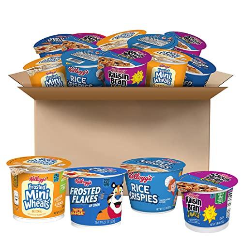 - Includes 24, individually sized cups of ready-to-eat Kellogg's cereals, assortment varies; Packaged for freshness and great taste