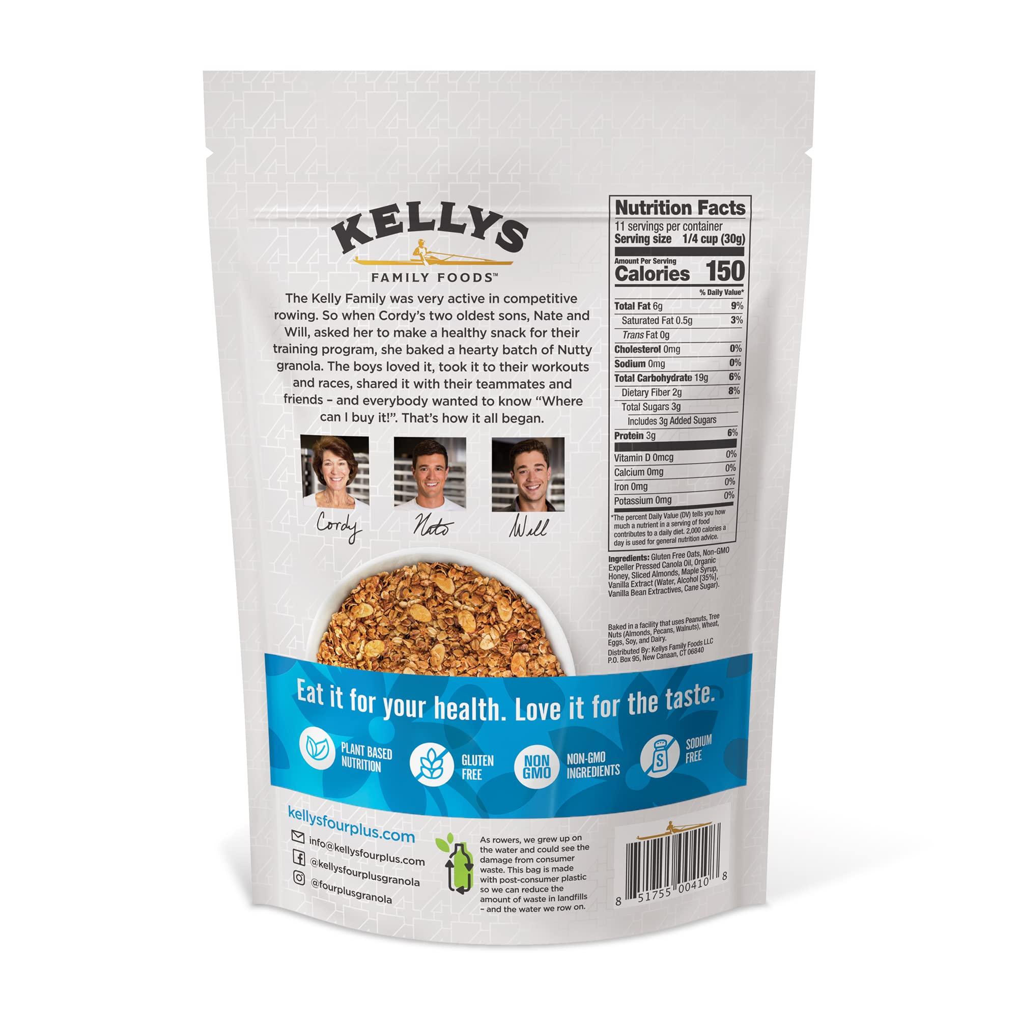 - [Healthy Granola for Everyone]: At Kelly's Four Plus we only use premium quality ingredients to make our granola. Our product is Non-GMO verified, gluten free, sodium free, and contains no trans fat.