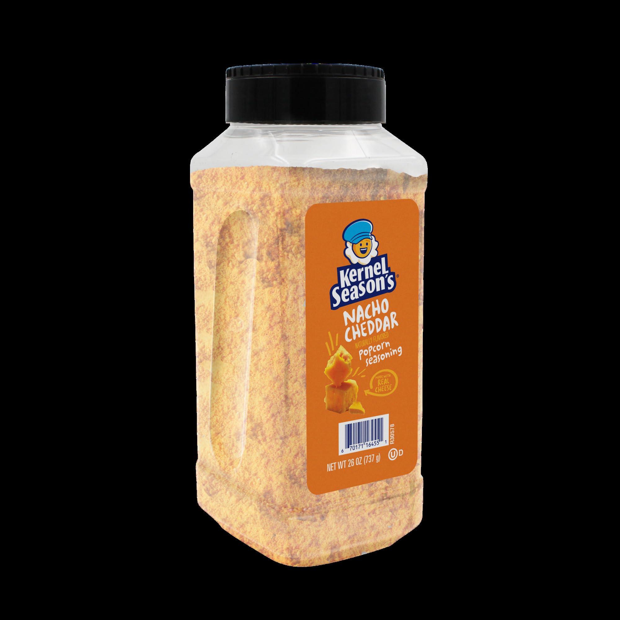 - Our Nacho Cheddar seasoning blends real cheddar cheese and select spices to give popcorn the spicy kick you love