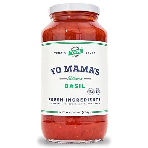 Yo Mamas Foods presents the best-tasting, most authentic Tomato Basil Sauce on the market! Just as Grandma made it 75 years ago, our award-winning Tomato Basil Marinara is made from whole non-GMO vine-ripened tomatoes, not concentrates like the leading brands. We also rely on only the freshest basil, garlic, oregano, onions, and pure olive oil. You simply won't find a fresher, more incredible gourmet sauce anywhere! Indulgent Meets Healthy. Although most sauces can be loaded with sugars and sodium, our premium natural and entirely plant-based tomato sauce contains only 6 total carbs per serving and 160mg of sodium. Our customers report using our sauces as a part of a wide array of low carb and low calorie diets, including Keto, Paleo, and Whole 30. A Versatile Sauce for Every Occasion. Enjoy our incredible Italian sauce on chicken, pasta, ziti, vegetables, lasagna, or pizza to enjoy an authentic Italian experience of your own! Indulge yourself guilt-free with the freshest, highest quality ingredients you will find. Our recipe is made only from Fresh non-GMO Vine-Ripened Tomatoes, fresh hand-cut Basil, Sweet Onion, White Cooking Wine, Fresh Garlic, Extra Virgin Olive Oil, Sea Salt, Oregano, and Black Pepper. Just like your mama's, because it is! Add Yo Mama's Gourmet Tomato Basil Pasta Sauce to your CART NOW to impress your family and friends with a sauce like no other! Pair with our incredible Balsamic to round out a truly Italian family experience!