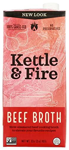 Kettle & Fire Beef Cooking Broth, Grass-Fed, Keto & Paleo Friendly, Gluten Free & Non-GMO, 32 Oz (Pack of 6)