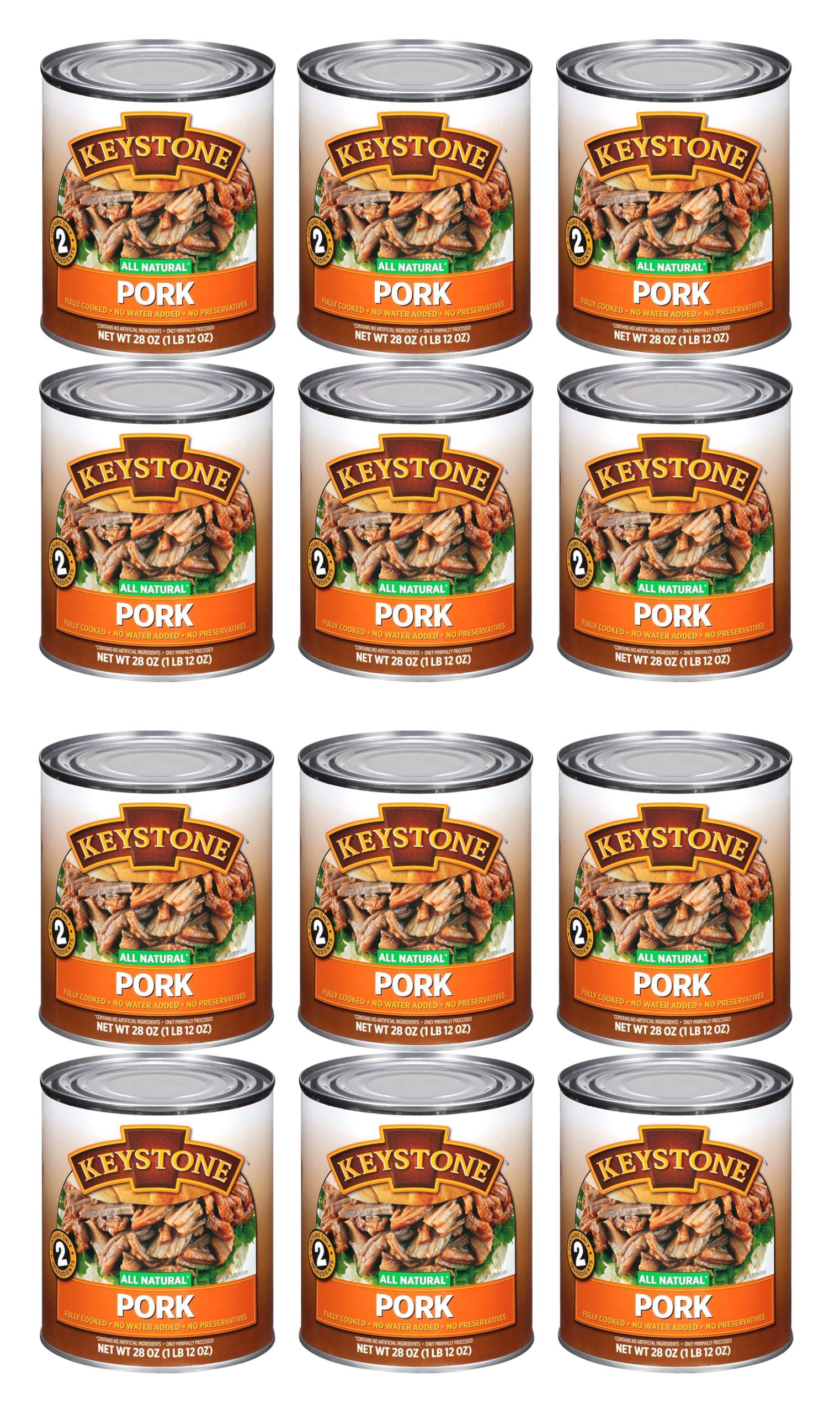 Keystone Keystone Meats All Natural Canned Pork 28 Ounce Long Term Shelf Life Emergency Survival Food Canned Meat | Fully Cooked Ready to Eat | No Water Added | Gluten Free No Carbs Family Pack of 12