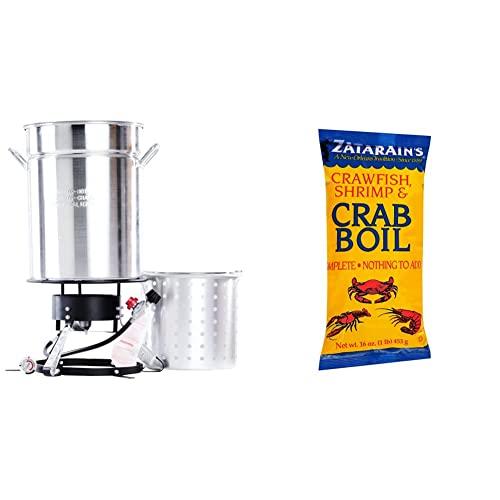 Boil and Steam Seafood and Veggies. Great for all Types of Cooking. Bolt Together 12-Inch Flat Top Outdoor Cooker, 15-Inch Diameter Top Ring, 50-Quart Aluminum Ridge Pot with Steamer Basket and Lid, Listed LP Hose and Regulator with Type 1 Connection Deep Fry Thermometer, Instruction/Recipe Booklet. CSA Design Certified. Box Dimensions: 16. 5 x 16. 5 x 15 inches. Shipping Weight: 28-pounds.