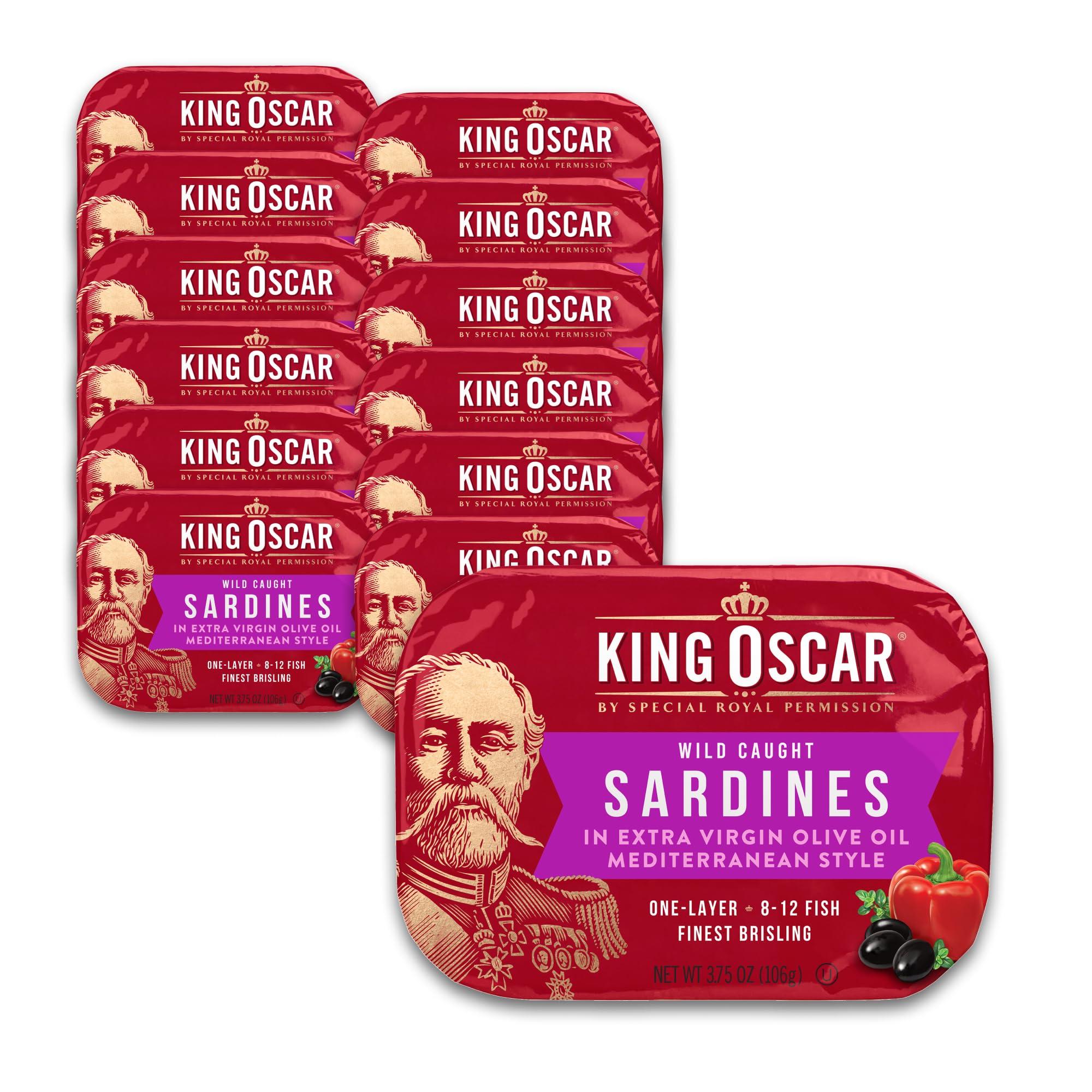 DELICIOUS MEDITERRANEAN FLAVOR: These gourmet quality, small brisling sardines are wild caught in Norway's ice cold fjords and coastal waters, lightly wood smoked, and hand-packed in a sunny Mediterranean-style ingredients sauce of top-grade extra virgin olive oil, sliced black olives, red bell pepper, garlic, and herbs of Provence. That's why King Oscar is the #1 selling sardine in America.
