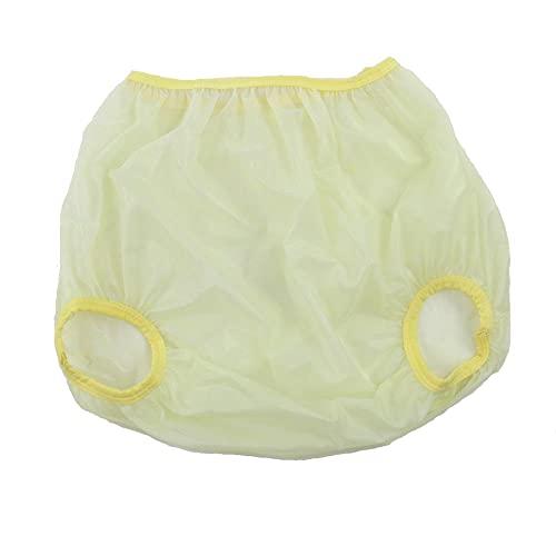 Adult Plastic Pants - Reusable 100% Waterproof Vinyl Adult Diaper Covers for Incontinence. These PVC diaper covers have room for thick diapers , including extra thick nighttime diapers and prefolds. The KINS 20300V are a classic full fit with a high waist to hold up your diaper. The semi clear, milky premium PVC vinyl is extra soft, smooth and supple. The waist and leg bands are made from a soft stretchable Lycra that will not pinch or bind the skin. Aside from being extremely comfortable to wear these PVC Diaper Covers are very discreet, quiet and don't rustle. These are a pull-on style plastic underwear for adults that don't require any fastening. Our adult incontinence pants are softer, smooth and more comfortable than peva. These plastic pants for incontinence come in white, blue, pink, yellow and are available sizes in small, medium, large, XL, 2XL and 3XL. Adult Sized 20300V PVC Waterproof Incontinence Underpants Special premium quality pvc Heat welded side seams to prevent leaks Unisex design suitable for men and women. Washing Instructions for Incontinence Plastic Pants for Adults These adult waterproof pants are extremely easy to care for. Machine wash or hand wash in warm water Machine dry on low for 10 minutes to keep your adult vinyl pants soft Avoid use of harsh detergents Avoid use of bleach.