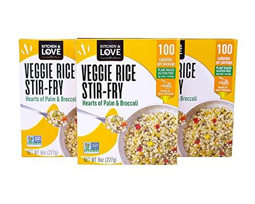 Kitchen & Love Hearts of Palm Veggie Rice Stir Fry, Low Carb, Low Calories, Plant Based, Non GMO, Gluten Free Rice Alternative, Vegan, Easy to Prepare Quick Meal 8 Oz (Pack of 3)