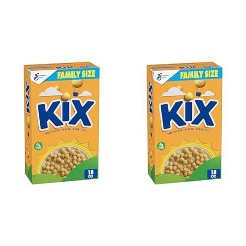 - CONTAINS: One 18 oz family size cereal box of General Mills Kix Breakfast Cereal