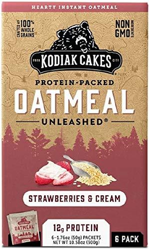 Kodiak Cakes Strawberries & Cream Protein-Packed Oatmeal Packets, Box of 6 Instant Oatmeal Packets, NON GMO, 12 Grams of Protein, Kosher Dairy