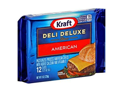Kraft Deli Deluxe American Sliced Cheese, 8 Ounce -- 12 per case. Pasteurized process American cheese with added calcium and vitamin D. Double the calcium of process cheese. Helps build strong bones! Plus Vitamin D. Calcium per serving in this product 20% vs process cheese 10%. 24 slices. 2 stacks. Ingredients: American Cheese (Milk, Cheese Culture, Salt, Enzymes), Water, Milkfat, Sodium Citrate, Calcium Phosphate, Salt, Sodium Phosphate, Sorbic Acid as a Preservative, Oleoresin Paprika (Color), Annatto (Color), Vitamin D3, With Starch Added for Slice Separation.