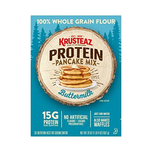 - DELIGHTFULLY DELICIOUS: Krusteaz Protein Buttermilk Pancakes taste just like, well, Krusteaz Buttermilk Pancakes! Enjoy a light, fluffy stack of deliciousness with 15 grams of protein per serving.