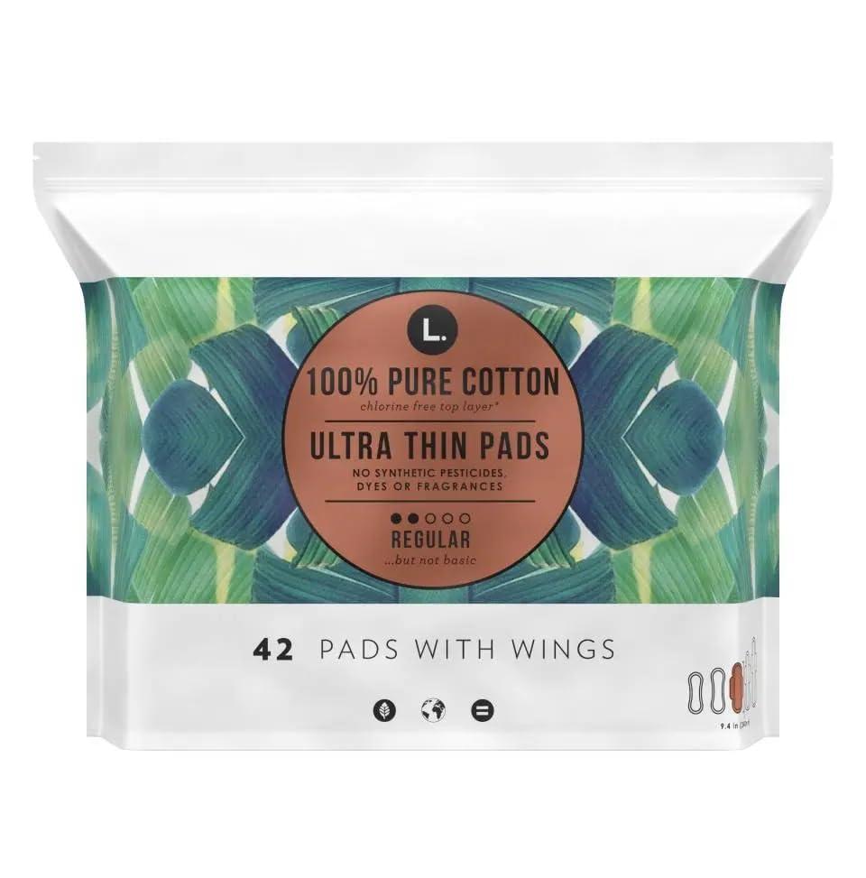 L. , Organic Cotton Ultra Thin Pads for Women, Super Absorbency, With Wings, 42 Count