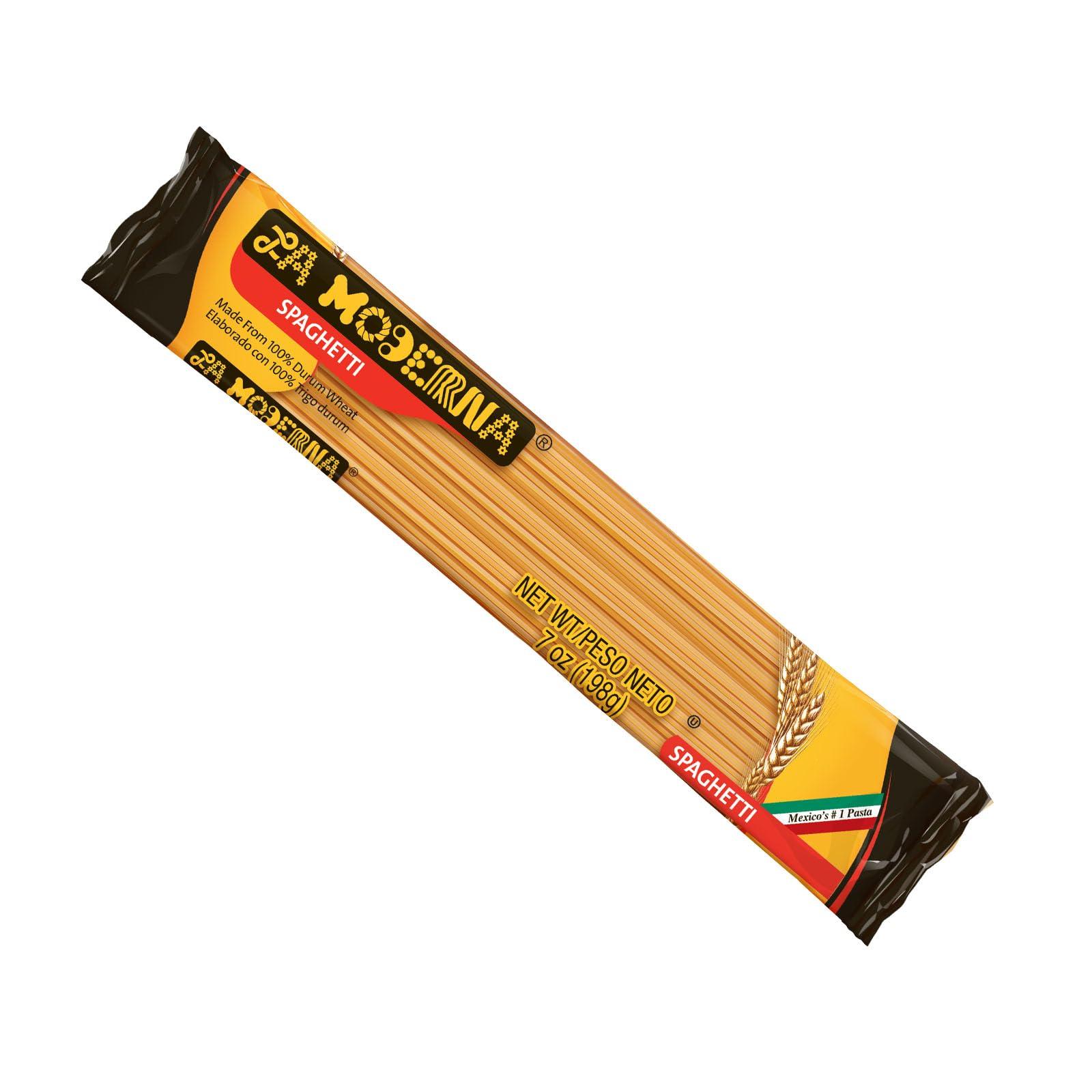 Elaborado con smola de trigo duro, nuestro spaghetti noodles se cocina siempre firme y perfecto, creando la base ideal para salsas tradicionales como boloesa o Alfredo. Este alimento es libre de conservadores, grasas, azcares, colesterol y organismos genticamente modificados, y su bajo ndice glucmico lo hace adecuado para diabticos. Con un volumen que crece durante la coccin, 7 oz rinden hasta cuatro porciones, convirtindolo en la solucin perfecta para el men semanal o para dar variedad al lunch escolar. Solo aade tu protena favorita y tendrs un platillo completo. Incluye gluten y no contiene alrgenos. Desde 1920, La Moderna, una orgullosa empresa mexicana, ha acompaado a generaciones de familias en su cocina, siendo parte de esas recetas que se transmiten de abuelos a nietos y de madres a hijos. Con ms de 40 cortes diferentes, ofrecemos una gran variedad de sopas y noodles, incluyendo vermicelli, pasta shells, elbow pasta, star pasta, cavatappi pasta y alphabet pasta. Adems de nuestras pastas, contamos con una seleccin de deliciosas galletas y harina, ampliando as nuestra gama de productos para satisfacer todas tus necesidades culinarias.