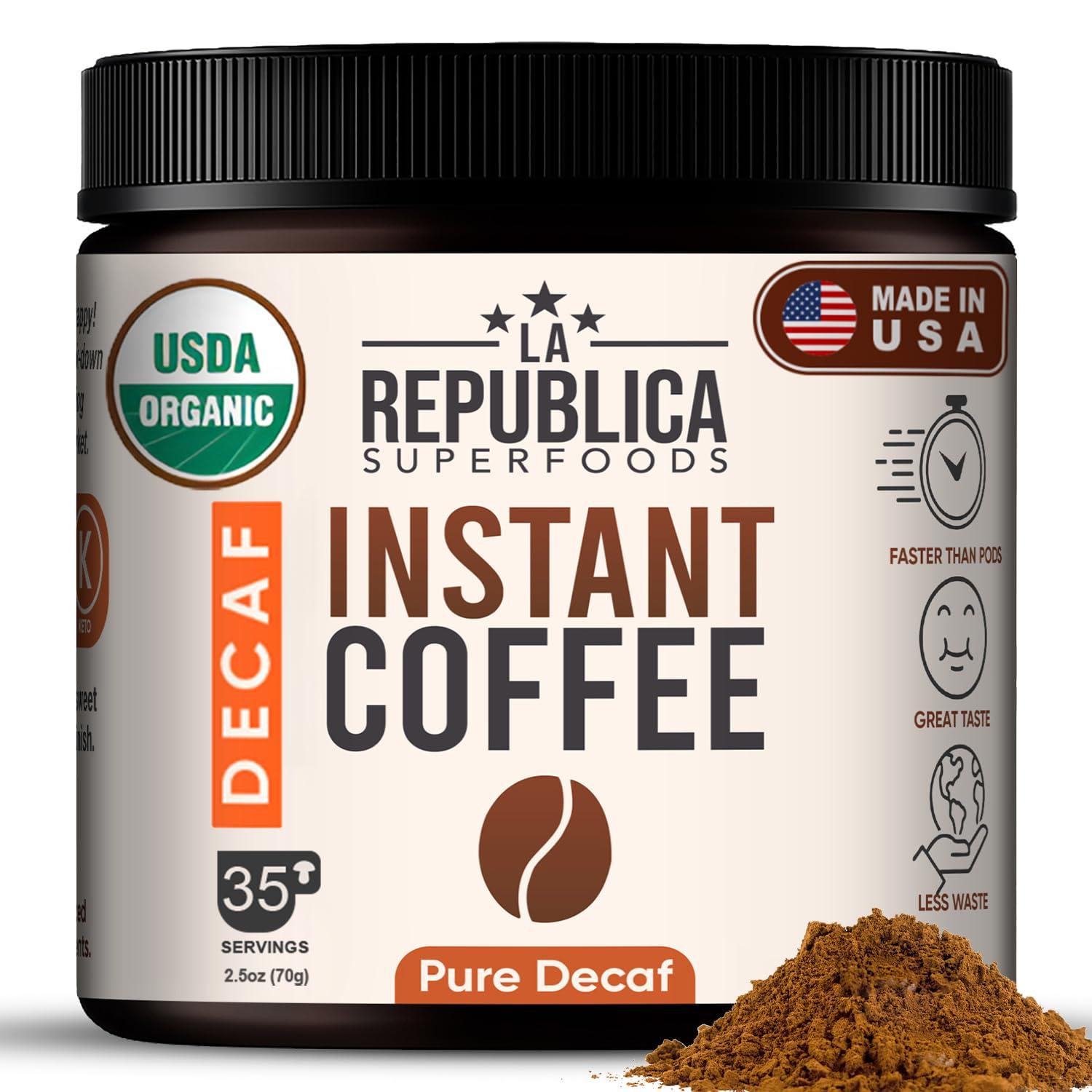 - HEALTH BENEFITS OF DECAF COFFEE: The decaf culture is much more than just caffeine-free. Our instant decaf coffee is a nourishing alternative to brewed coffee for those with acid reflux, and for those with heart-healthy guidelines who need their coffee fix without the caffeine. Eliminate those less-than-stellar side effects from classic coffee and make the switch to our organic instant coffee powder.