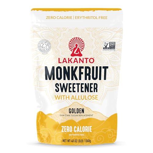 - ALLULOSE INFUSED SWEETNESS WITHOUT THE SUGAR: Lakanto Monkfruit Sweetener without erythritol is your next brown sugar substitute, offering a texture and taste remarkably similar to raw cane sugar without any calories. This sweetener dissolves quickly in liquids, keeps baked goods moist, and delivers the sweetness you crave, all in a convenient 3 lb bag.