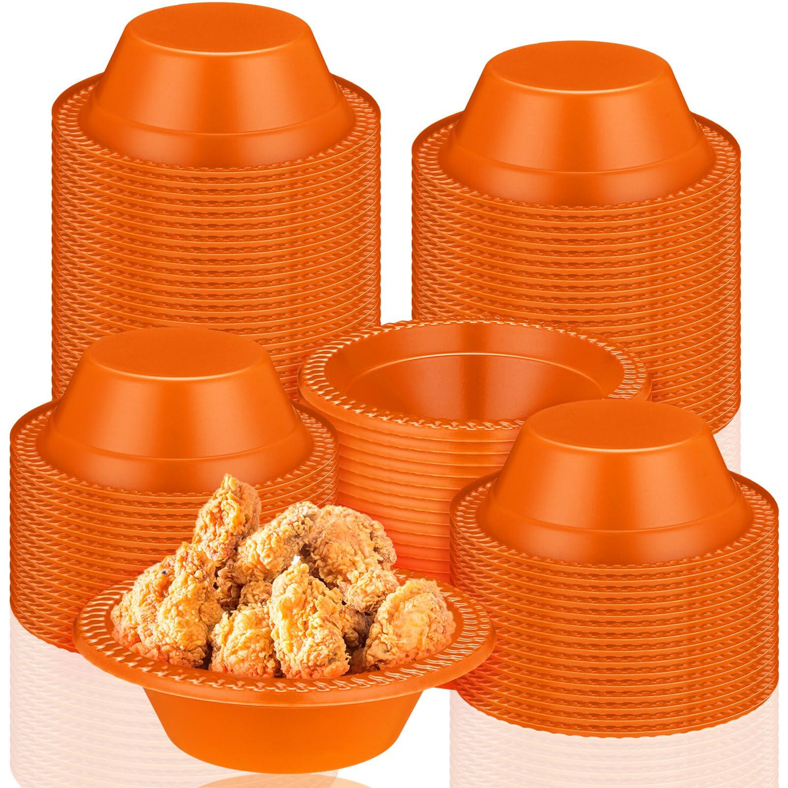 • Rich in Quantity: you will receive 100 pieces of plastic disposable bowls in orange color, enough quantity and classic color to meet your needs and replacements, and you can also share some with your friends and family members