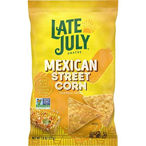 Get ready for the deliciously bold taste of Late July Mexican Street Corn Tortilla Chips. Our tortilla chips are made with organic corn and seasonings and inspired by real ingredients for an amazingly delicious taste that you can enjoy right out of the bag. We hope youll love them as much as we do. Late July is the sweet spot of summer. Its a moment in time when life is simple, pure and good. And our chips take you there, any time of year. Its also our name and our snack-making philosophy. Since 2003, we have been obsessed with crafting the worlds most delicious snacks with only the finest organic and non-GMO project verified ingredients. Our 100% whole-grain chips are made with organic corn, theyre kosher, are certified gluten free, and contain no artificial flavors or preservatives. There are about 8 servings per 7.8-oz. bag of Late July Tortilla Chips. Thanks for snacking with us.