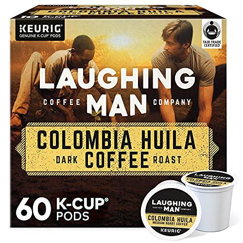 Every purchase helps coffee farmers. A dark roast coffee of uncommon complexity, our Laughing Man Colombia Huila is produced from beans of great character, resulting in an intense deep-roasted flavor, black cherry sweetness, and a dark chocolate finish. These single-serve K-Cup pods are compatible with all Keurig K-Cup Pod Single-Serve Coffee Makers. Each K-Cup pod is filled with the freshest ground coffee and brews a perfect, great tasting cup of coffee, every time. 100% Arabica, Fair Trade and Certified Orthodox Union Kosher coffee. Laughing Man Coffee is now available in a recyclable K-Cup pod. Features Dark. Smoky. Sweet. Dark Roast, Caffeinated Coffee Fair Trade Certified Orthodox Union Kosher Single Origin: Huila, Colombia Made with Arabica Coffee Laughing Man Coffee is now available in a recyclable K-Cup pod Compatible with Keurig K-Cup pod single-serve coffee makers.