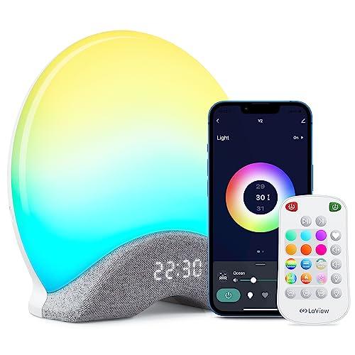 LaView Smart White Noise Machine,App Control Sleep Sound Machine Night Light 25 Relaxing Sounds and 8 Rhythm Modes,Sunrise Wake Up Light,Smart Alarm Clock for Kid/Adult, Ideal for Gift