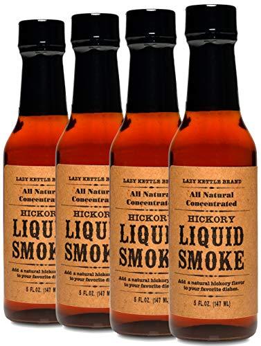 Lazy Kettle Brand All Natural Liquid Smoke | Perfect for Flavoring Meat | Hickory | Used to Flavor Beef Jerky, Steak, Fish, Cheese, Sauces and More | Pack of 4 bottles 5 Oz Each